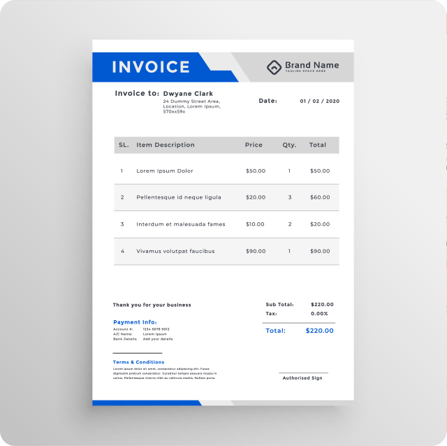 We create customized invoices and cash memos that reflect your brand—perfectly formatted for clear transactions, professional records, and easy GST compliance.